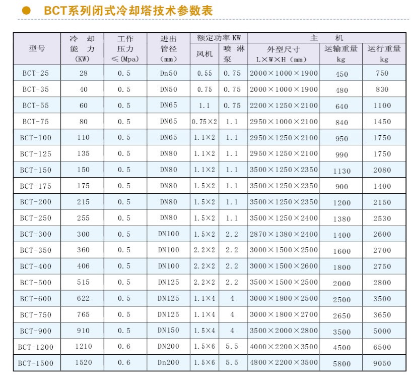 閉式冷卻塔成套設備由主機、膨脹水箱、循環泵及電控柜等組成。